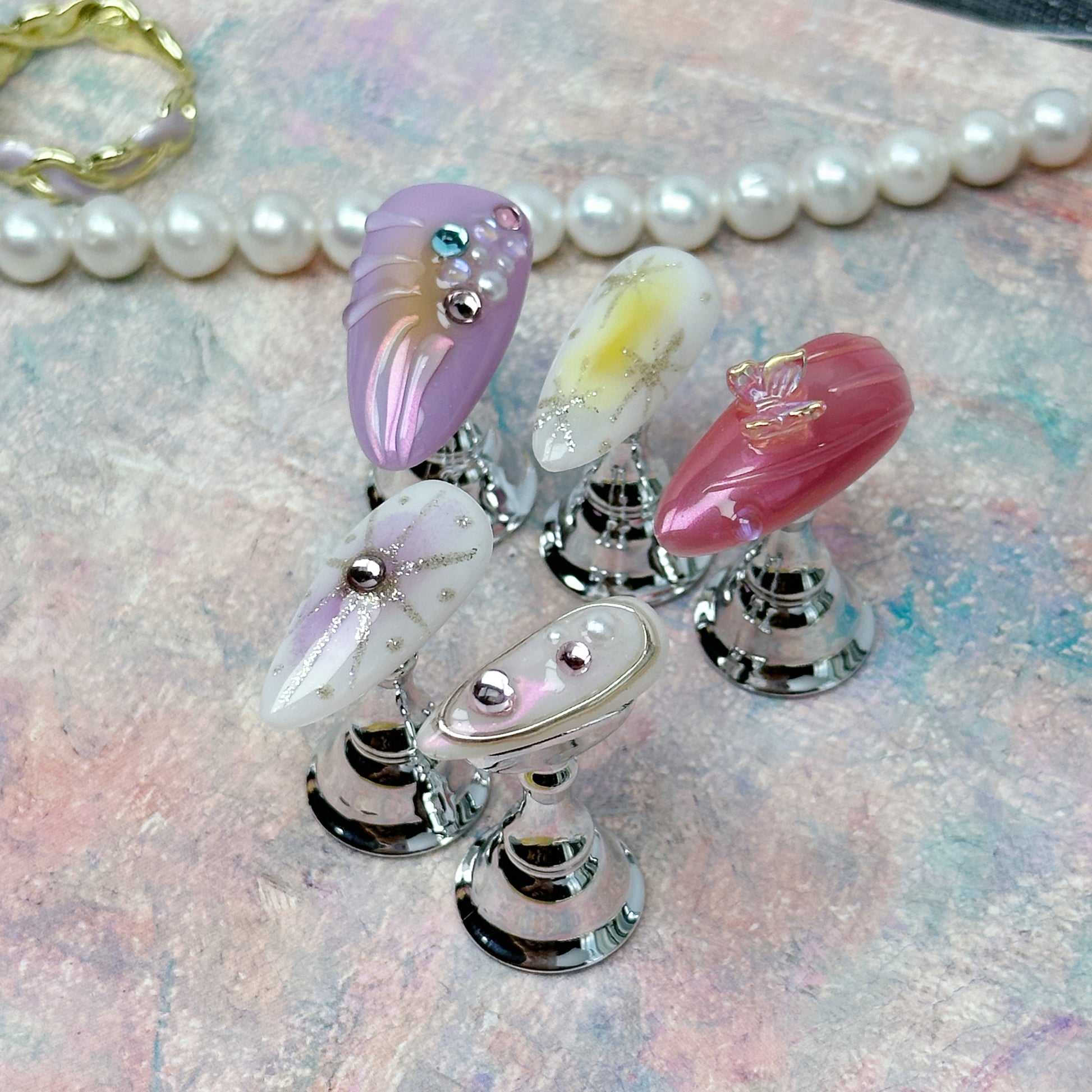 * Cotton Candy Dream | Handmade Press-On Nails | Style No. A046 | Iridescent Jelly Gradient + 3D Beads + Stars