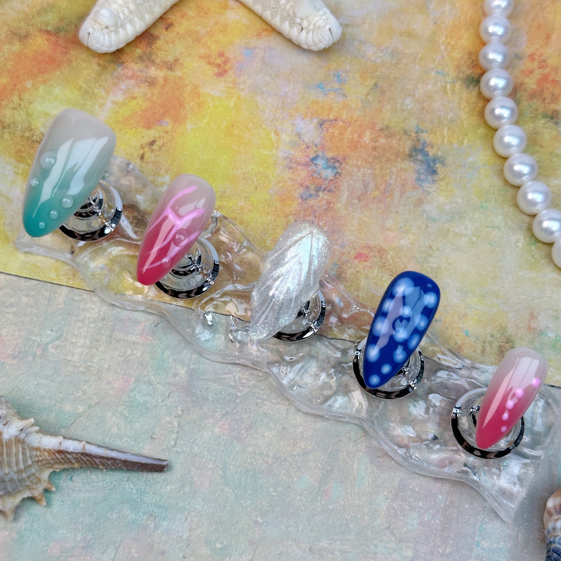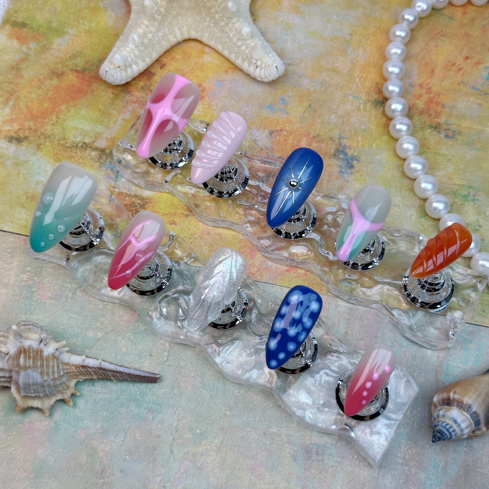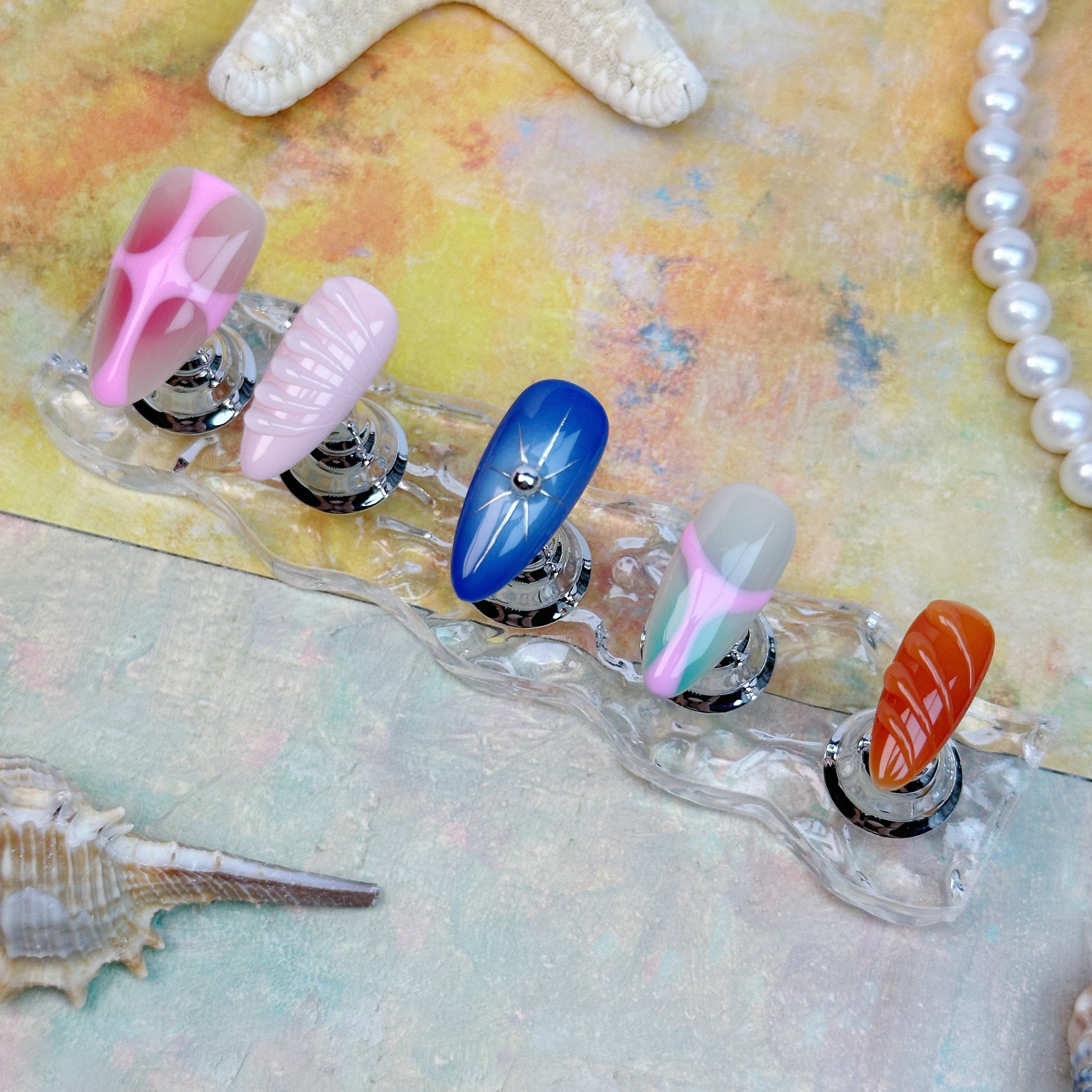 Bold, funky, and full of attitude—our Neo Pop Press-On Nails are made for statement lovers. This handmade set features a playful mix of vibrant colors, including pink, blue, green, orange, and red, layered with stripes, gradients, and 3D accents. Each nail is unique, creating an artsy, Y2K-meets-modern look perfect for creative outfits, festivals, or trend-forward styling. Reusable, lightweight, and easy to apply—express yourself with every fingertip.