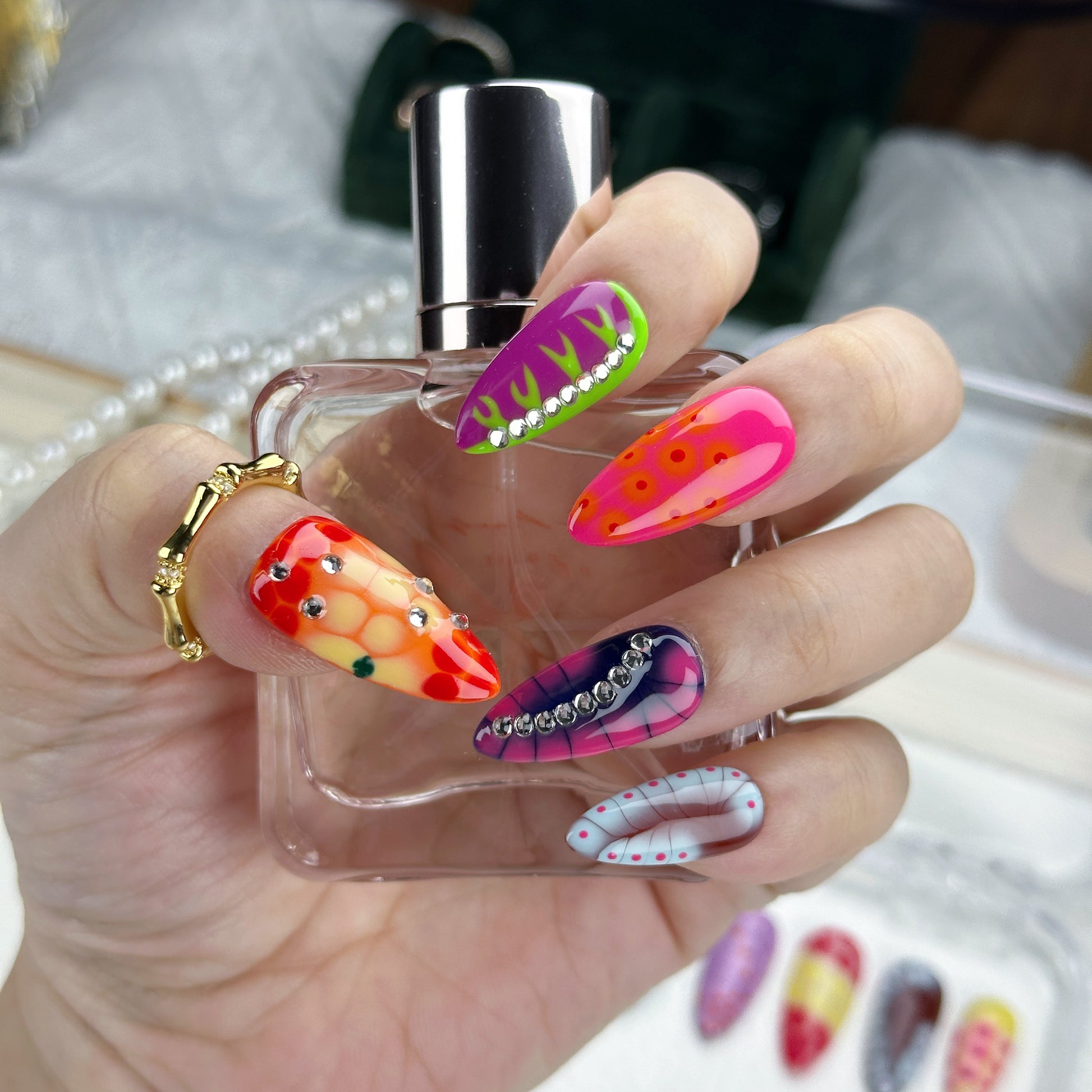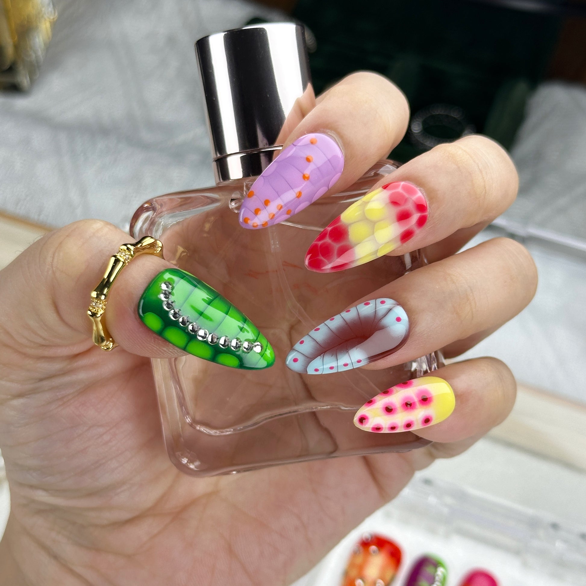 Monster Pop | Handmade Press-On Nails | Style No. G006| Bold Color Mix, Claw-Inspired Design, Reusable Artistic Nail Set