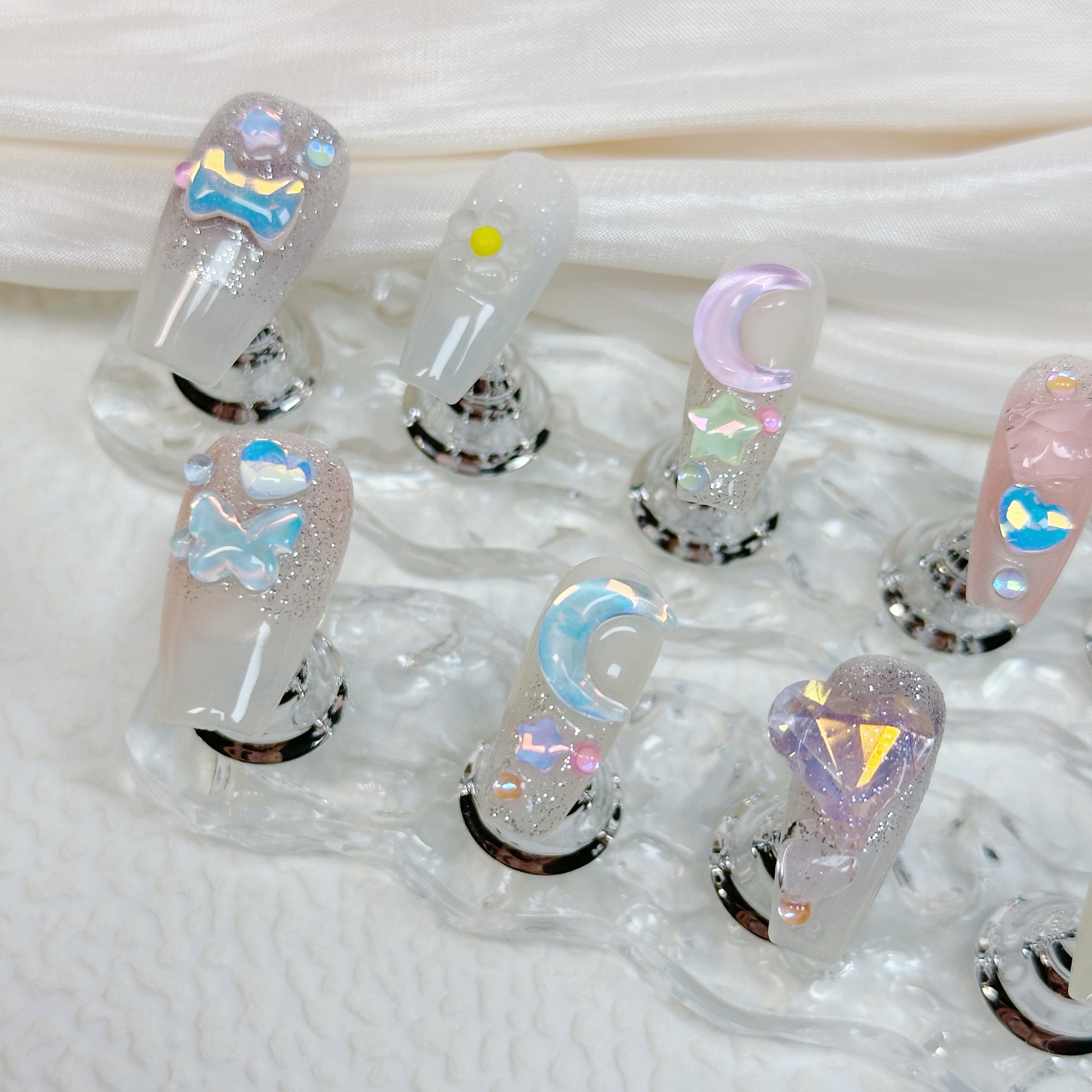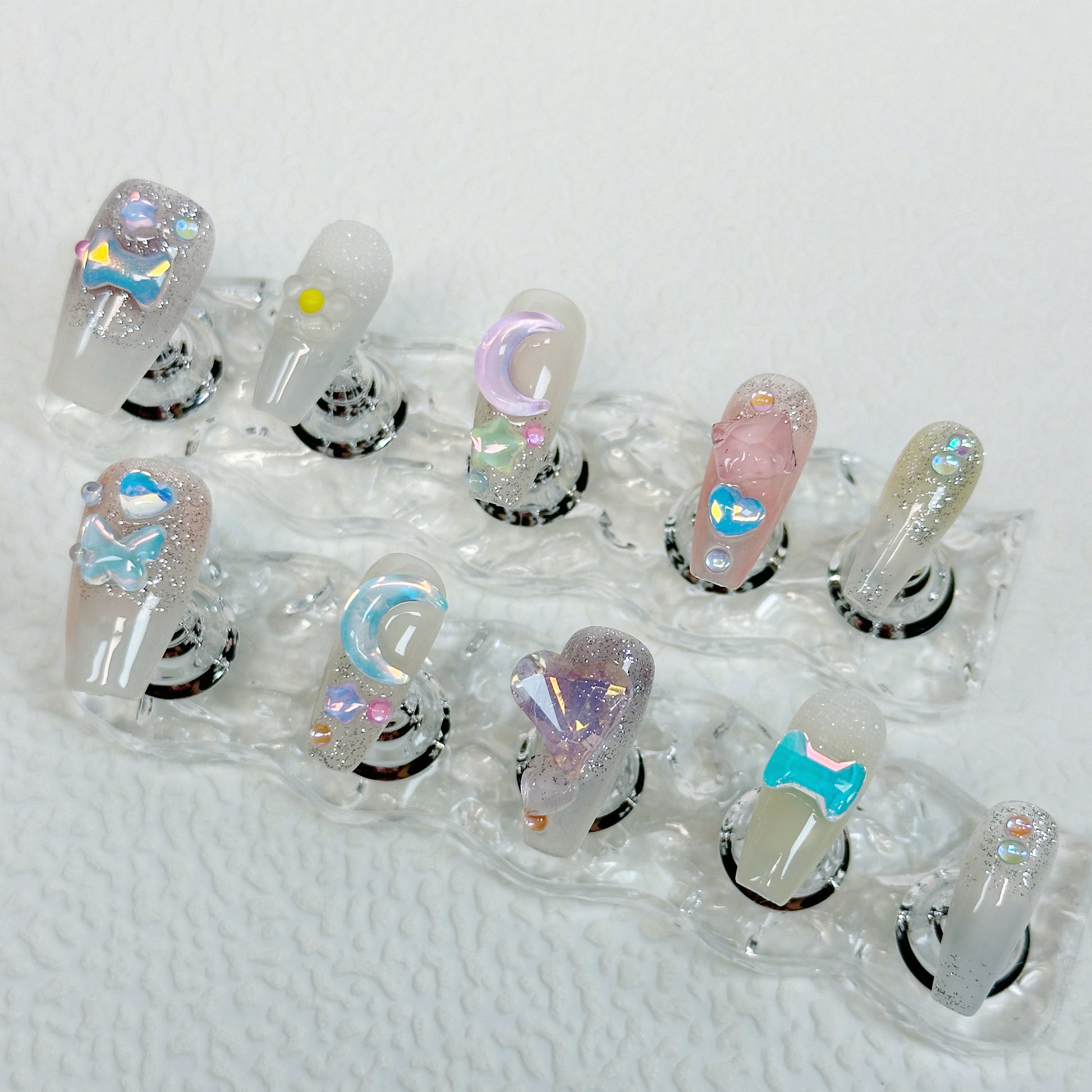Crystal Candy QL002 Moonlight Dream Press On Nails πβ¨ | 10 Pcs Reusable Handmade Press-On Nails, Glitter & Crystal Design for Daily Wear, Special Occasions, Parties