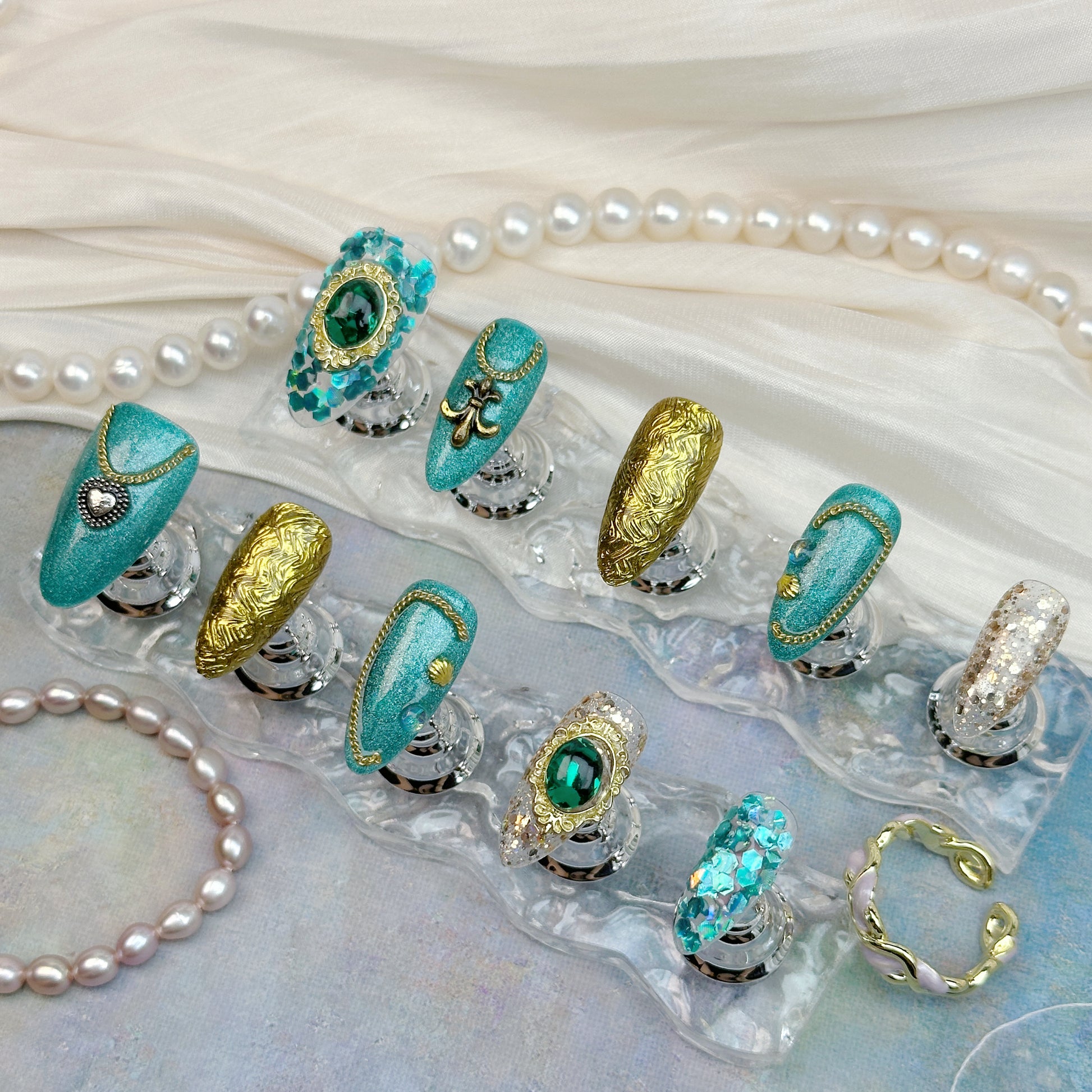 * Emerald Baroque | Handmade Press-On Nails | Style No. A002 | Reusable, Long-Lasting, Luxury Nail Set